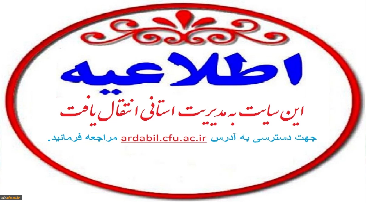 این سایت به مدیریت استانی انتقال یافت مراجعه فرمائید. جهت دسترسی به آدرس ardabil.cfu.ac.ir مراجعه فرمائید.