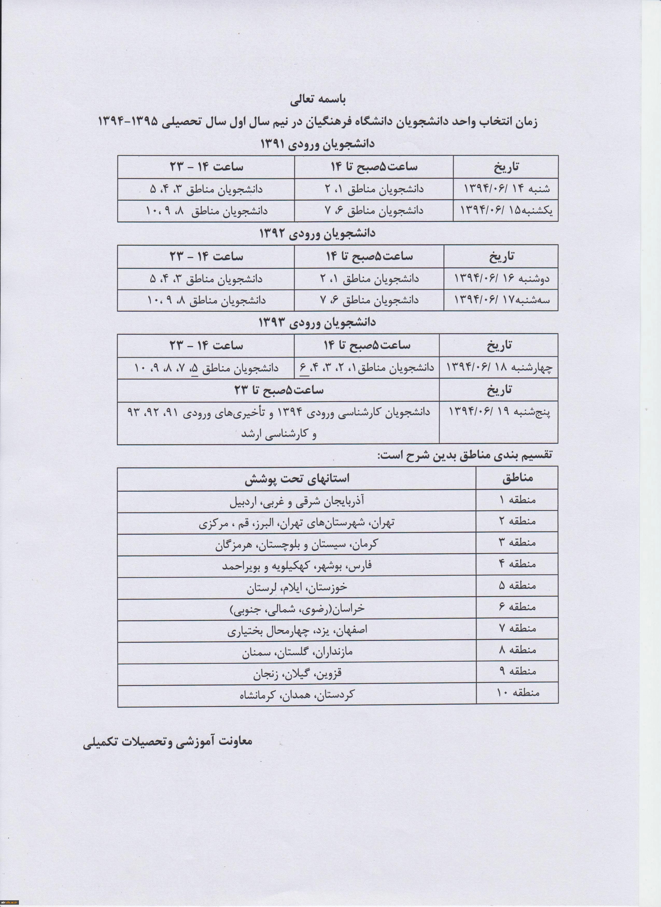 اعلام زمانبدی انتخاب واحد وتقویم آموزشی نیمسال اول - نیمسال دوم - تابستان سالتحصیلی 95-1394 2